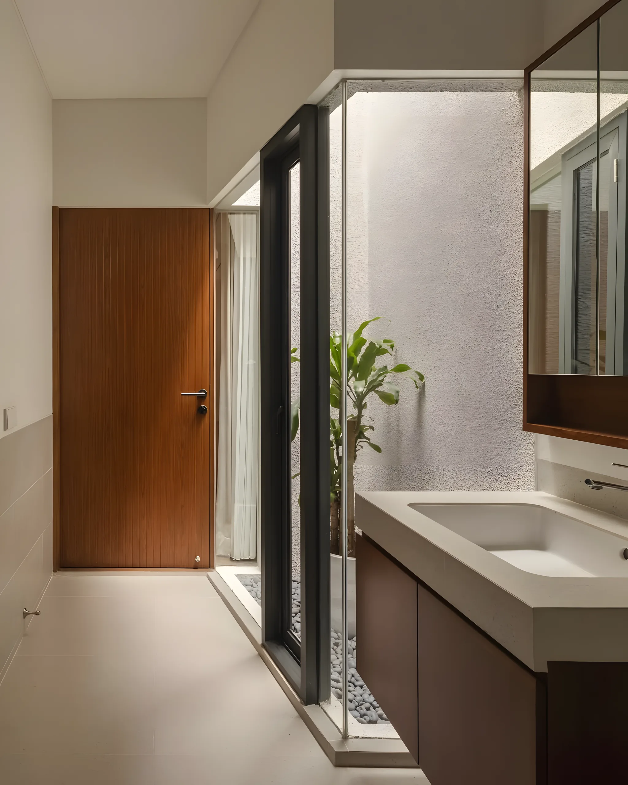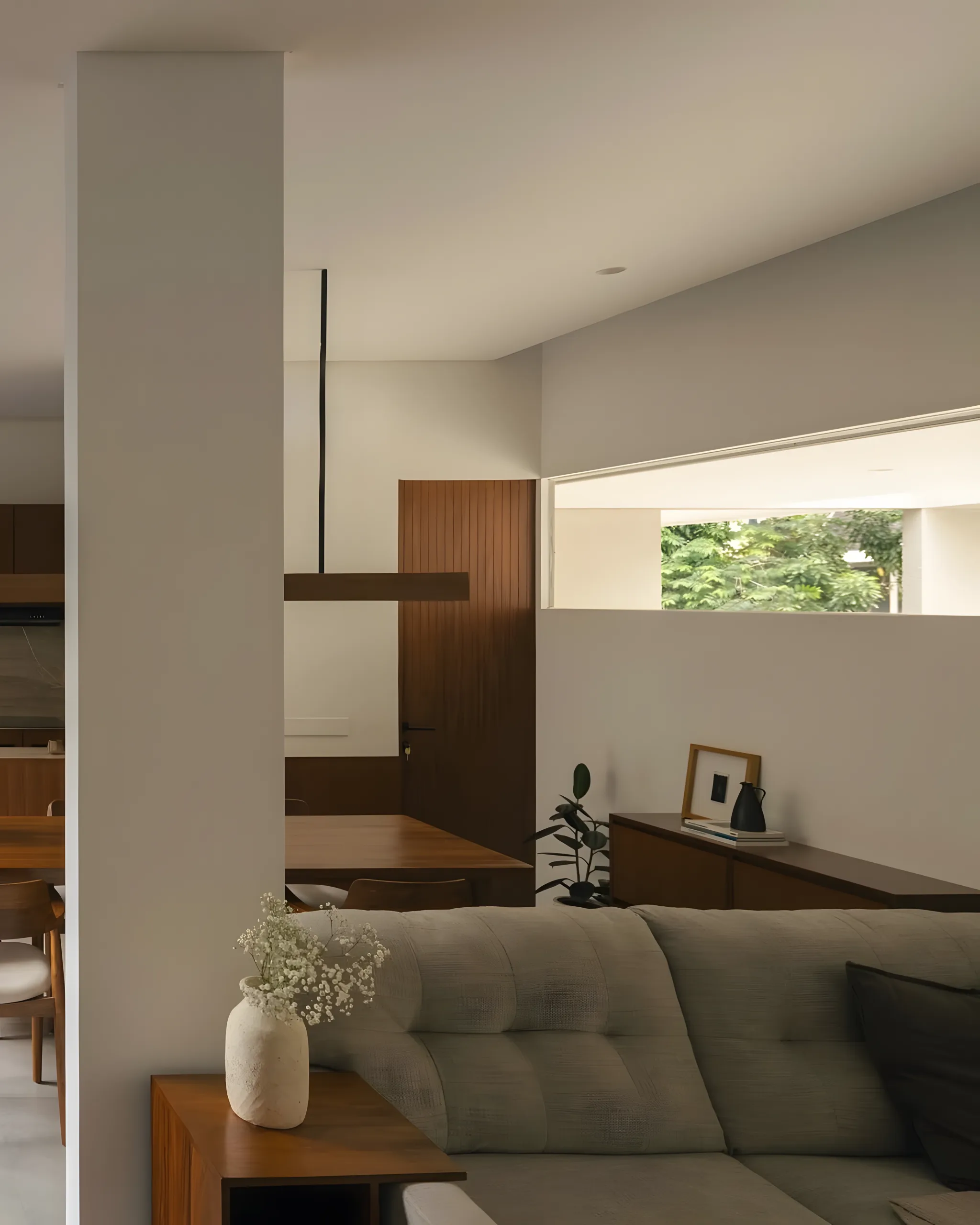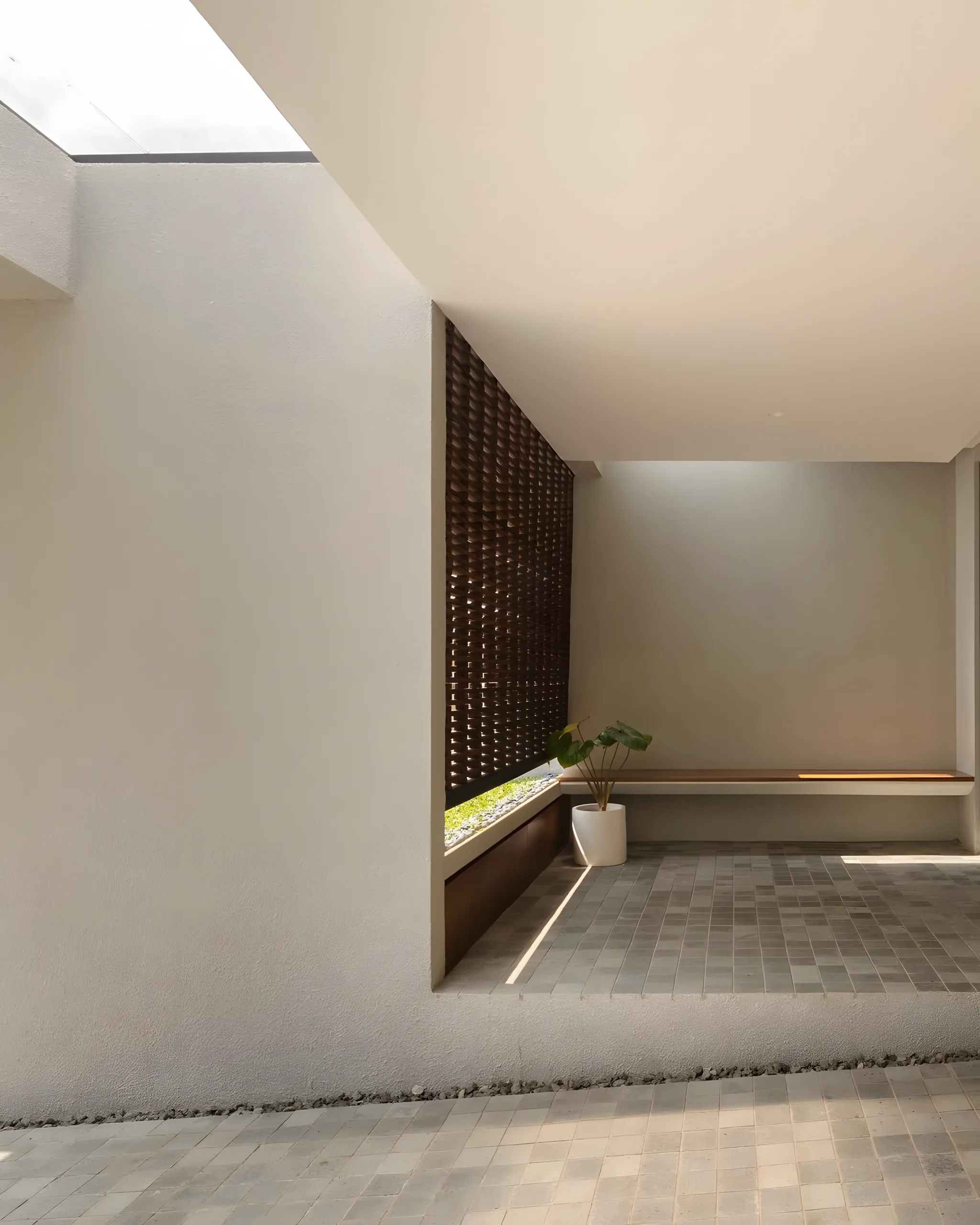 Công trình NGÓI mang phong cách kiến trúc hiện đại với bố cục rõ ràng, mạnh mẽ và ưu tiên sự hòa hợp với yếu tố bản địa. Tổng thể được tổ chức từ các khối hình học vuông vức, tạo cảm giác vững chãi và cân bằng. Kiến trúc sư khai thác những khoảng trống, mảng đặc – rỗng một cách tinh tế, giúp công trình vừa hiện đại vừa gần gũi với môi trường sống xung quanh.