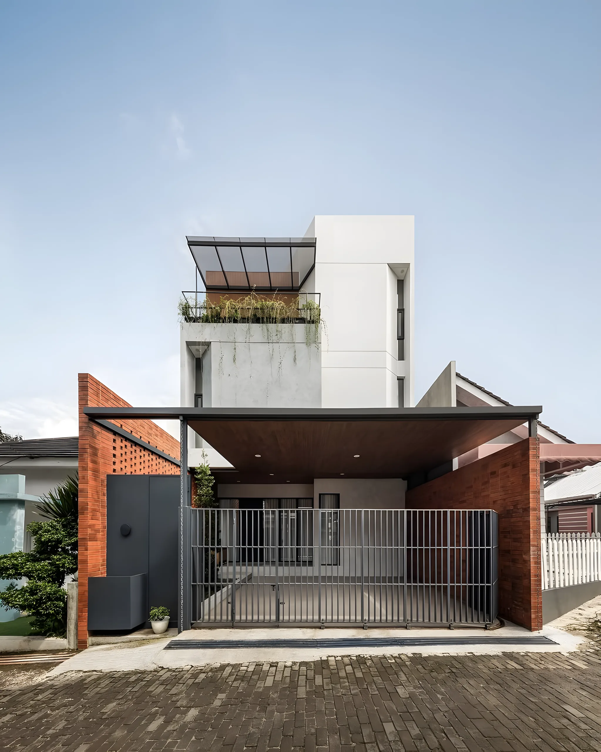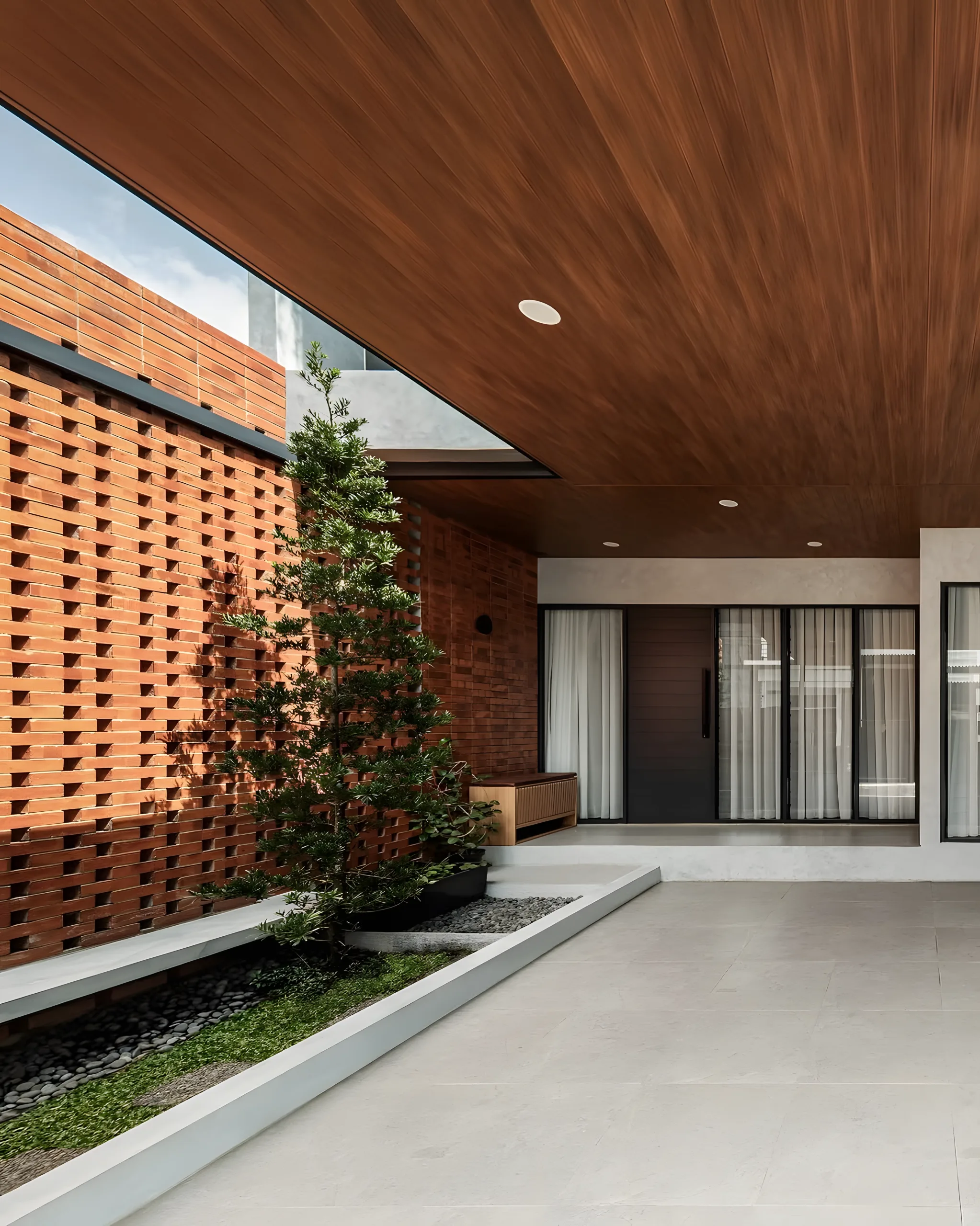 Công trình NHÀ TRÊN ĐỒI được phát triển theo phong cách kiến trúc hiện đại, kết hợp mạnh mẽ giữa hình khối mạch lạc và cảnh quan thiên nhiên bao quanh. Lợi thế địa hình dốc được khai thác khéo léo để tạo ra những lớp không gian tầng bậc, vừa đảm bảo tầm nhìn rộng mở vừa mang lại sự riêng tư cần thiết. Tổng thể công trình được tổ chức bằng các khối hộp vững chắc, tạo cảm giác mạnh mẽ nhưng vẫn hài hòa với địa thế tự nhiên của đồi.
